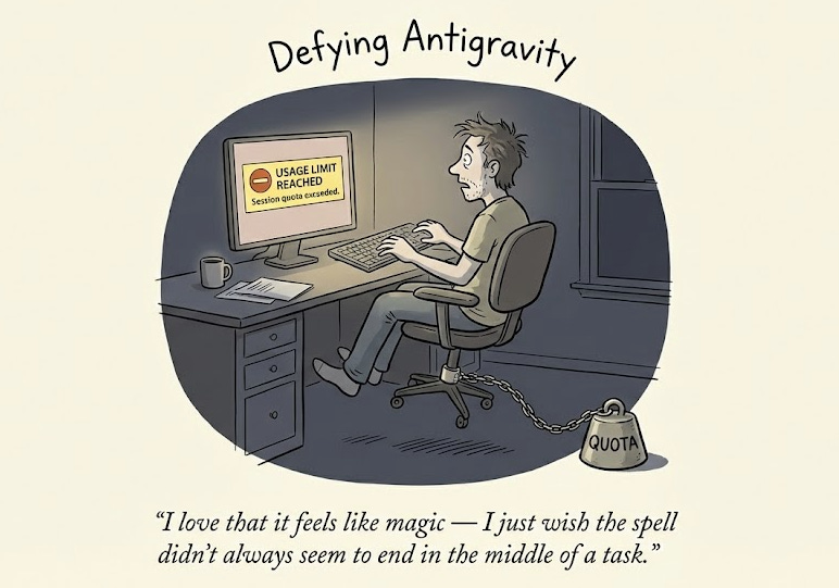 I’d assumed that the Antigravity team wanted to get their IDE out in a way timed to draft off the Gemini 3 launch - and thus were willing to not have everything in their go to market buttoned up. But idle hands are the devil’s workshop - and every time I’m grooving and get rate limited I have time to ponder the “why” of the delay.