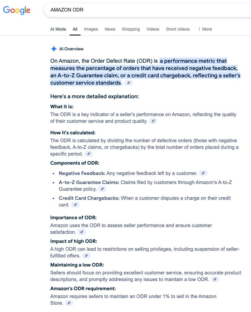 If none of these issues arose, we assumed the transaction was satisfactory. Order Defect Rate (ODR) - the percentage of orders with at least one defect in a certain amount of time - was born.